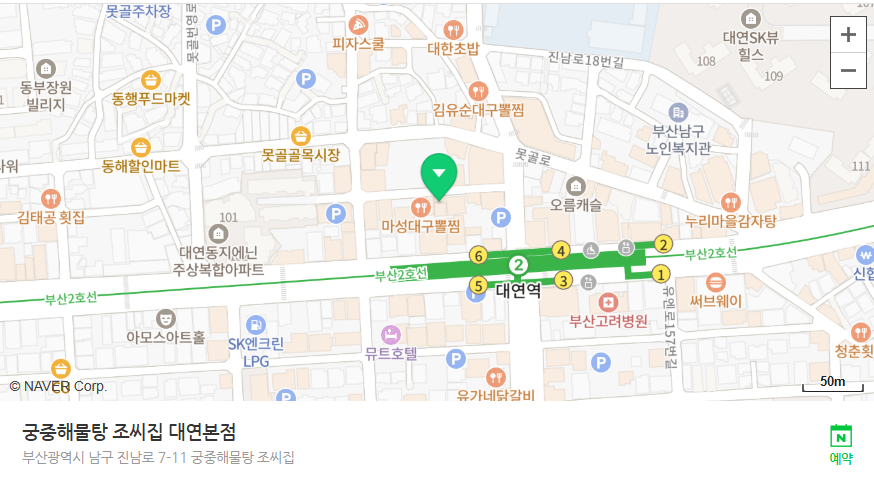 - 지도 앱에서 ‘궁중해물탕 조씨집 대연본점’ 즐겨찾기 등록